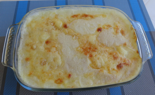 It is not a secret if I say that many of our Lebanese dishes originated from France. After more then seventy years of French Occupation, it is very expected that we have learnt much of their cuisine. Personally, I love gratin dishes. I previously posted Nouilles and Moussaka, both of which are gratin dishes. Today I made potato gratin, the way I like it. Its inspired by Potato Dauphinois but instead of garlic, I used onion and grated cheese. I made it as a side dish with chicken escalope topped with caramelized onions, which adds a nice flavor to the chicken. I hope you like this recipe as much as I enjoyed preparing and eating it 🙂